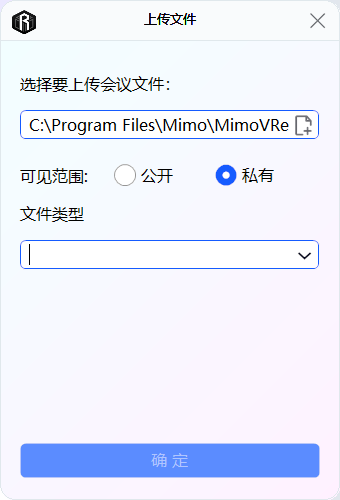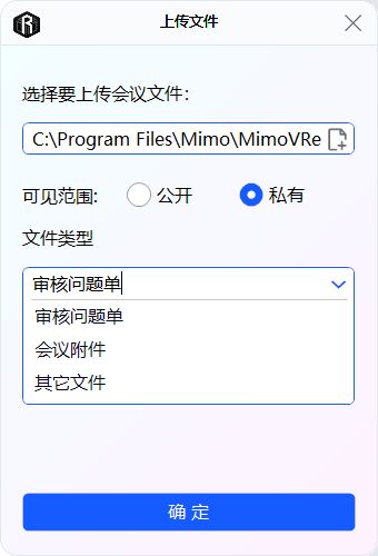 选择文件类型后,选择确认按钮,上传文件。