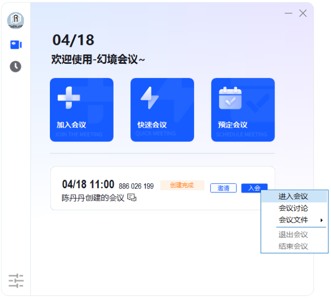 创建完成的会议,可以进行的操作: