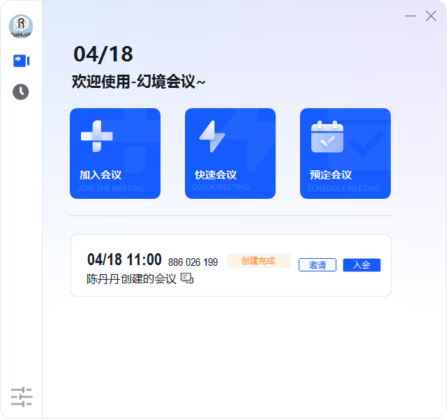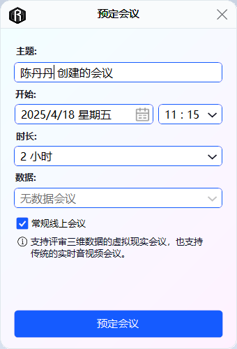 鼠标选择“预定会议”,创建会议完成: