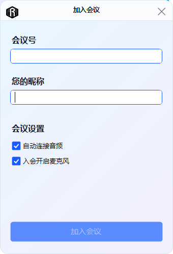 鼠标左键单击主画面中的加入会议,进入添加会议画面:
