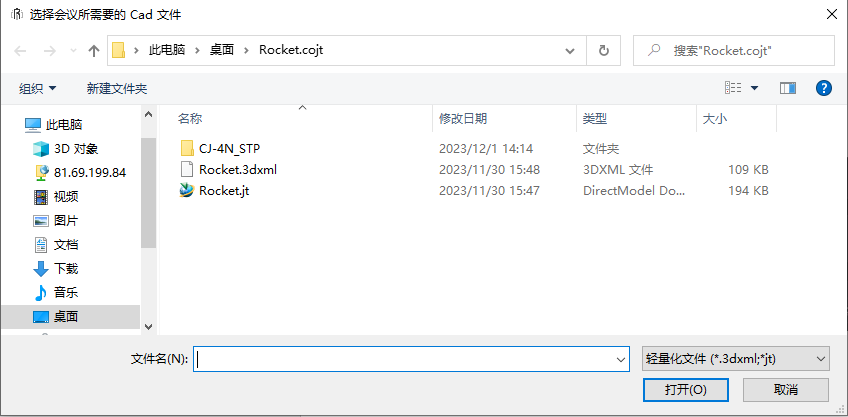 点击创建会议,选择Cad文件,支持3DXML,STP,JT格式