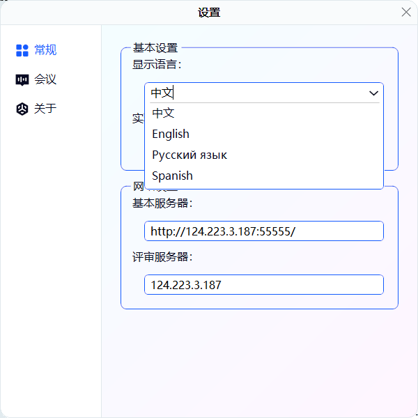 1. 点击登录窗口设置按钮,显示语言可以根据需要选择不同语言。目前支持中英文互相切换。