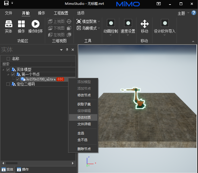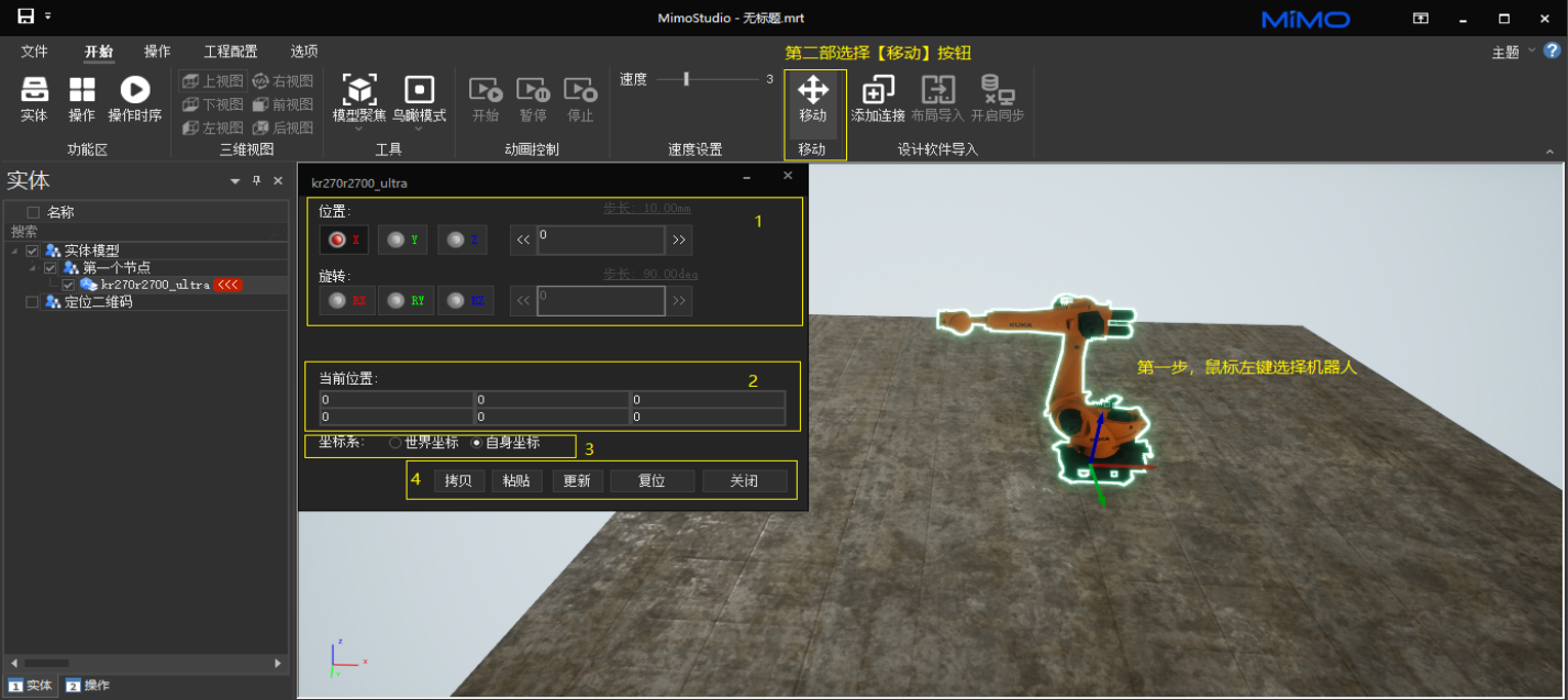 在三维场景中,鼠标左键选择【kr270r2700_ultra】模型