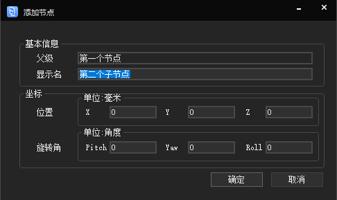 在弹出的【添加节点】窗口的【显示名】栏中,输入节点名(例:第二子节点)后,选择【确定】按钮。如下图所示: