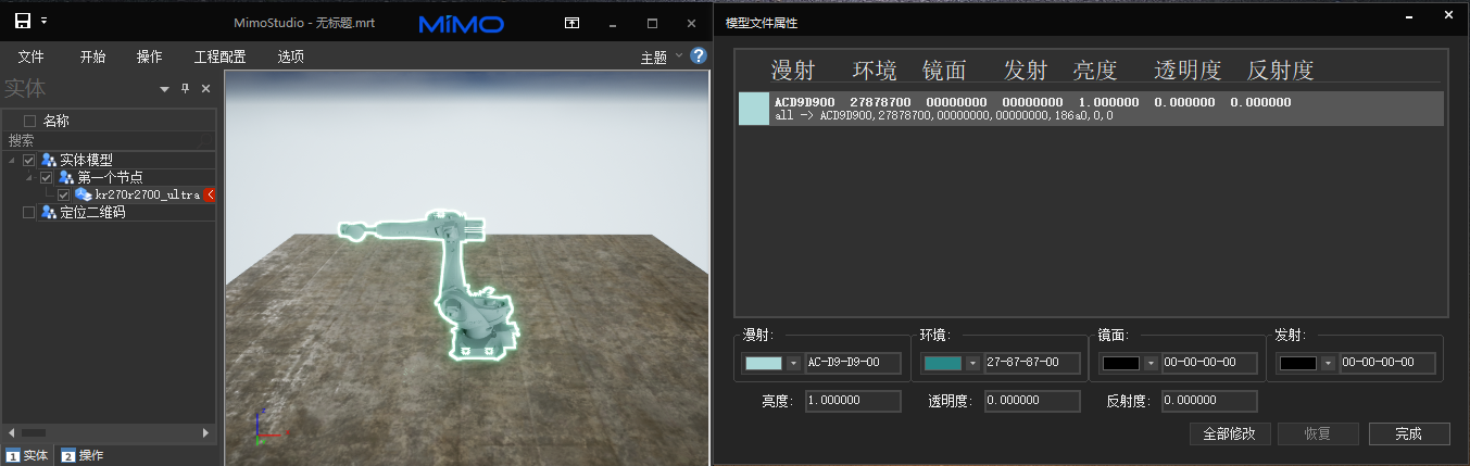 *模型的材质修改保存再mrt工程文件中,因此模型材质的修改,只对当前mrt工程有效