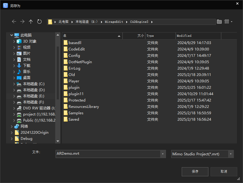 *如果是打开的工程,且是【保存】工程,则不会弹出“选择文件保存窗体”