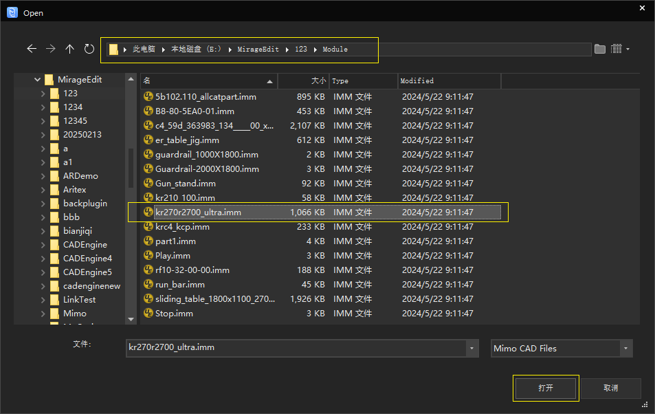 在【打开】窗口中,选择imm文件的所在的目录,和选择需要打开的后缀为imm文件,选择【打开】按钮,如下图所示: